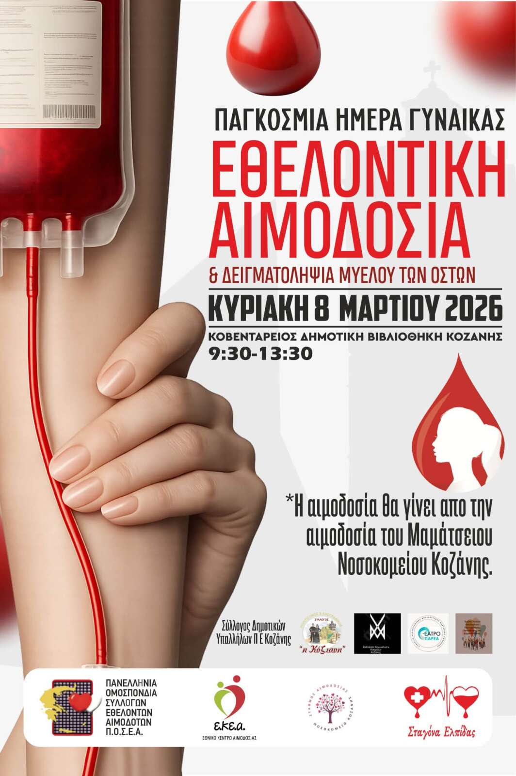 Σύλλογος Δημοτικών Υπαλλήλων Π.Ε. Κοζάνης Εθελοντική Αιμοδοσία & Δειγματοληψία Μυελού των Οστών Κυριακή 8 Μαρτίου 2026