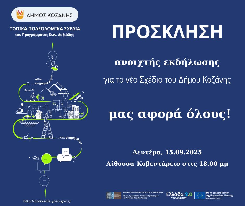 Ανοιχτή Πρόσκληση για την Παρουσίαση των Εναλλακτικών Σεναρίων του Τοπικού Πολεοδομικού Σχεδίου του Δήμου Κοζάνης