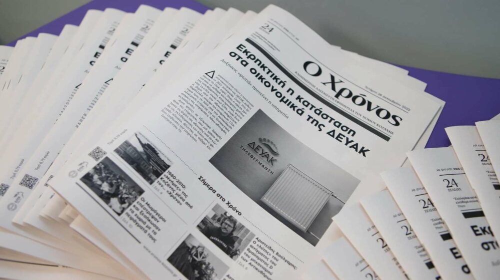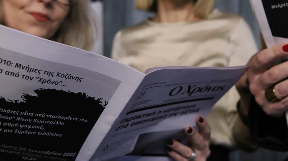 Την ενότητα ειδησεογραφία παρουσίασε ο αρχισυντάκτης του «Χρόνου» Σωκράτης Μουτίδης που έκανε ένα πέρασμα σε τίτλους στα κύρια γεγονότα των περασμένων δεκαετιών. Ο σεισμός του ’95, το κλείσιμο των ΜΑΒΕ και της ΑΕΒΑΛ, οι διαμαρτυρίες εναντίον της ΔΕΗ, ατυχήματα, μετεγκαταστάσεις και μεγάλα έργα ήταν μερικά από αυτά που αποτύπωσε ο φωτογραφικός φακός του «Χρόνου».