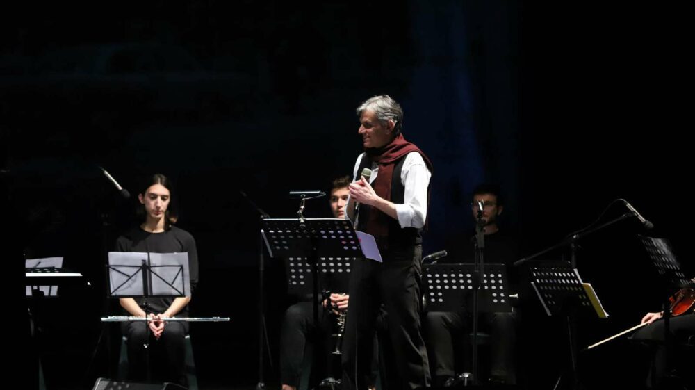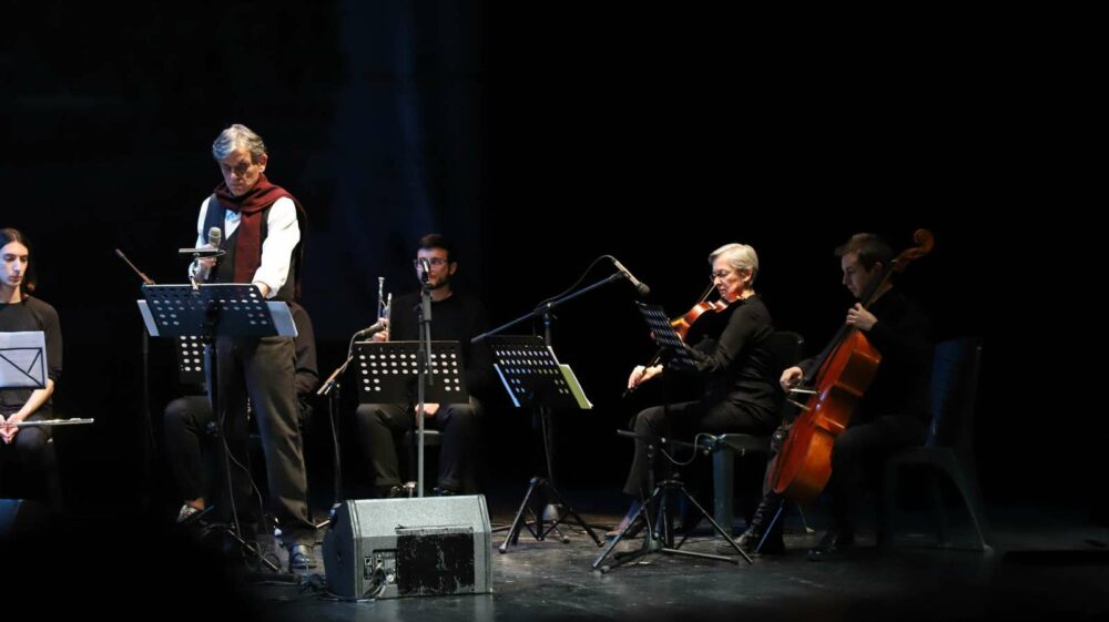 Η βραδιά ξεκίνησε και ολοκληρώθηκε με μουσική. Στο α’ μουσικό μέρος παρουσιάστηκαν από την Music Art- Νέο Ωδείο Κοζάνης, αποσπάσματα από το έργο του Κοζανίτη συνθέτη Γιάννη Δόδουρα, ενώ στο β’ μέρος ακούστηκε το πρωτότυπο έργο «Ετερόχρονος» σε σύνθεση του HaRiSioS (Χάρης Γκατζόφλιας) που γράφτηκε για τη συγκεκριμένη περίσταση. Το ρόλο του αφηγητή είχε ο Μανώλης Χατζημανώλης και το έργο παρουσιάστηκε και πάλι από την Music Art- Νέο Ωδείο Κοζάνης.