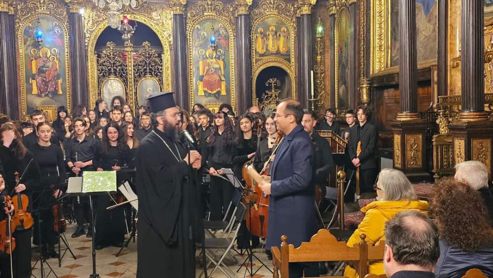 Την μουσική της Λειτουργίας υπέρ Ειρήνης ερμήνευσαν οι Άγγελος Ιωαννίδης, Αργυρώ Ιωαννίδου, Βασιλεία Κύργια-Γεωργιάδη, Μάρκος Μάρκου, Πέτρος Μυλωνάς, Ελισάβετ Τσακιλτσίδου, Θεοδώρα Χατζηαλεξίου και Ελένη Χατζηαποστόλου στο φλάουτο, οι Νικολέτα Θανασούλα, Άγγελος Καραβόλτσος και Γεωργία-Ρέα Σβώλη στο κλαρινέτο, οι Φώτιος Ιωαννίδης, Δέσποινα Κλοκίδου και Βαλεντίνα Κρυτσάνη στο σαξόφωνο, οι Μαρία Θεοδοσίου και Θεοφάνης Μπαλτζής στο κόρνο, οι Σωκράτης Ανδρεόπουλος, Νικόλαος Ζυγανιτίδης, Ιωακείμ Ιωαννίδης και Χαράλαμπος Κεφαλίδης στην τρομπέτα, ο Κωνσταντίνος-Ραφαήλ Κλοκίδης στο τρομπόνι, οι Μυρτώ Λαζαρίδου και Βάγια Τουρτούρη στο πιάνο, ο Νικηφόρος Τσομπανάκης στο μπάσο, οι Δήμητρα Ευθυμιάδου, Ιωάννης Ζυμάρας, Συμεών Ιορδανίδης, Γεώργιος Καρακώστας, Στυλιανός Στογιάννης, Μιχαήλ Τσαλιάνης στα κρουστά, οι Κωνσταντίνος Βογιατζής, Άννα Γκόσις, Αντωνία Δαύκα, Αμαλία Εφραιμίδου, Θεόδωρος Μπαλτζής, Χρυσή Μιχαηλίδου, Κωνσταντίνα Παπακοσμά, Αικατερίνη Παυλουδάκη, Νικολέτα Χωλοπούλου, Αναστασία Καλφοπούλου, Πηνελόπη Μαμάτσιου και Σάρρα Τσαβδαρίδου στα βιολιά και οι Βασιλική Γαβριηλίδου, Πέτρος-Ιορδάνης Λαζαρίδης, Ιωάννης Παυλίδης και Μαρία Τσουκαλίδου στο τσέλο.