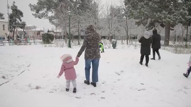 Παιδιά και μεγαλύτεροι χαίρονται τα πρώτα χιόνια στην Κοζάνη με χιονοπόλεμο και δημιουργία χιονάνθρωπου