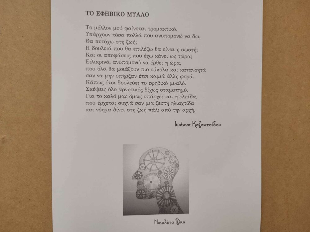 Το περιοδικό αυτό δημιουργήθηκε δύο χρόνια πριν με απόφαση δύο φιλόλογων καθηγητών του σχολείου, τη κα. Ελευθεριάδου και τον κ. Δελιόπουλο. Η Ελευθερία Κουρκούτα ήταν από τις πρώτες μαθήτριες που συμμετείχαν και ανέφερε για την εμπειρία της ότι όλο αυτό δημιουργήθηκε από το μηδέν. «Επειδή υπήρχε ο covid δεν ήταν εύκολο να γίνει η έκθεση και αποφασίστηκε πέρυσι να είναι η πρώτη χρονιά», είπε. Επίσης στάθηκε στο πόσο καλή εμπειρία αποτέλεσε εκείνη η έκθεση για όλους και ένας τρόπος να εκφράσουν τις σκέψεις και τα συναισθήματά τους. Αυτό, τόνισε, ότι συνέβαλε στο να είναι ακόμα καλύτερη η φετινή έκθεση.