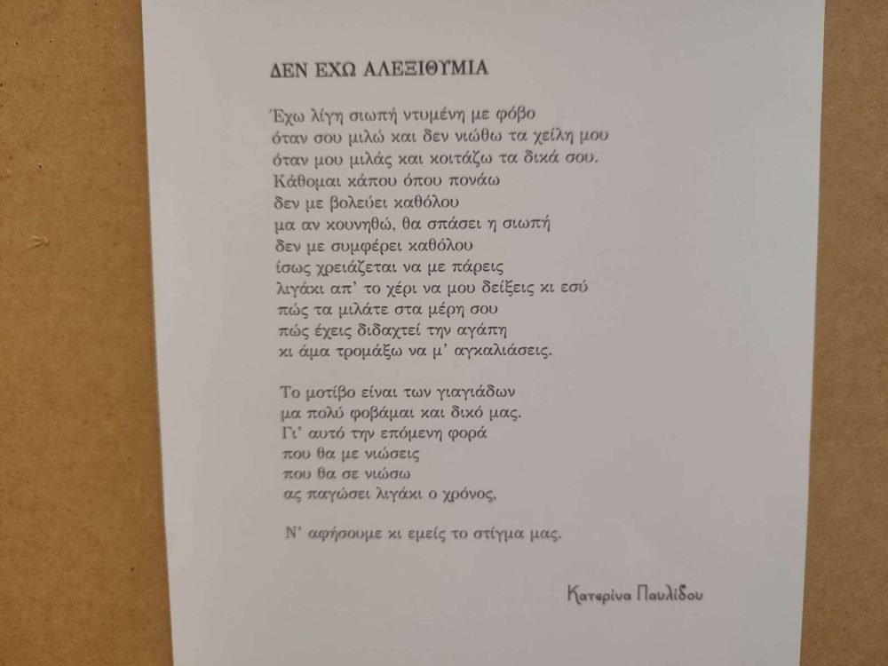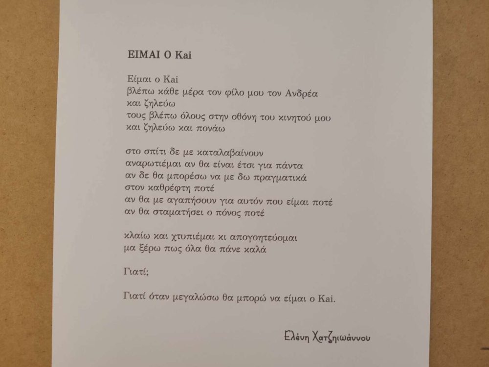 Η Άννα Μαρία Γιαννουλή, μαθήτρια, συμμετέχει στην έκθεση γράφοντας κείμενα. Μιλώντας για την έκθεση αυτή είπε ότι είναι όμορφο να βλέπουν οι άλλοι τη δουλειά τους και ότι μέσα από το περιοδικό βρήκαν τρόπο να εκφράσουν τη φωνή τους. «Το κείμενο το οποίο έγραψα και εκτίθεται εδώ αφορά τα ταξίδια και το μέλλον. Όλοι προβληματιζόμαστε για το μέλλον και το τι θα συμβεί, χωρίς όμως να μπορούμε να το καθορίσουμε ακριβώς», συμπλήρωσε.