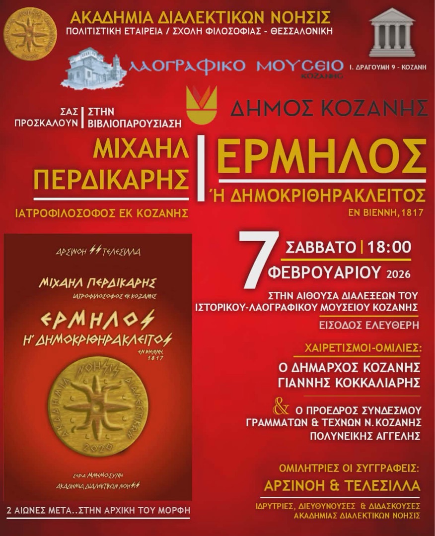 προσκαλούν στην Βιβλιοπαρουσίαση Μιχαήλ Περδικαρης Ιατροφιλόσοφος από την Κοζάνη